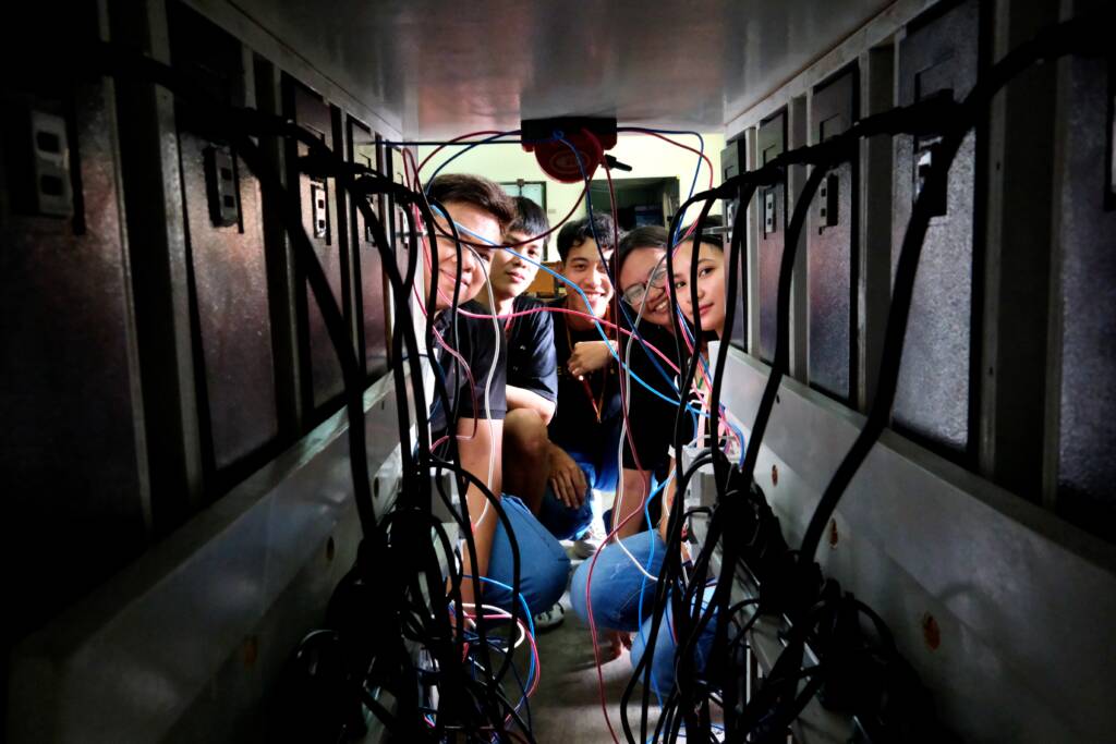The back-end of the charging station. Students spent months developing the program installed in the charging station, troubleshooting the cables, and conducting tests to ensure that each portion is working without any issues. Photo: Nadia Cruz