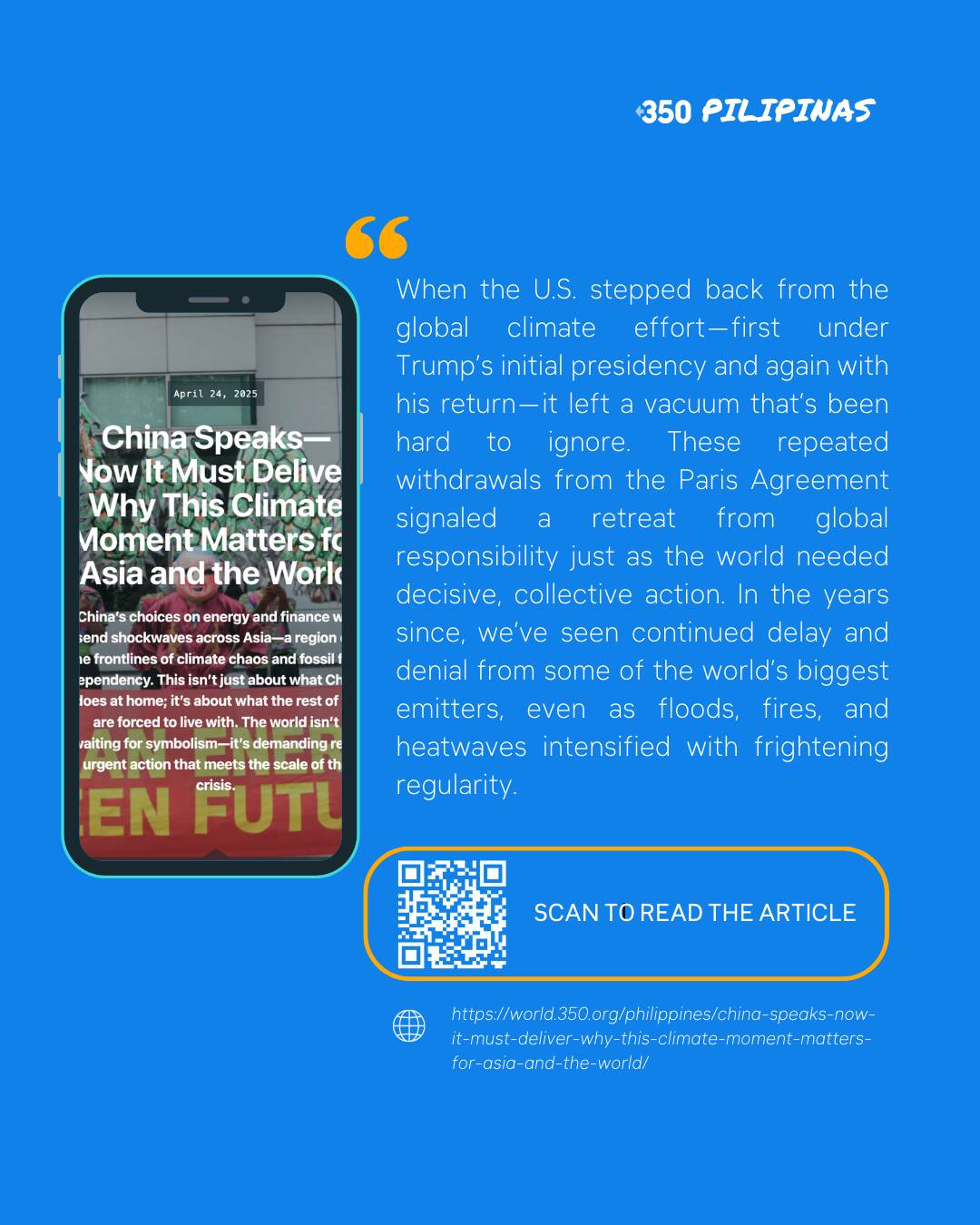 So yes, China’s words matter. But what happens next will matter more. In this collective race against time, the world doesn’t need more announcements. It needs bold, accountable leadership at the scale the climate crisis demands. We’re watching—and organizing—for exactly that.