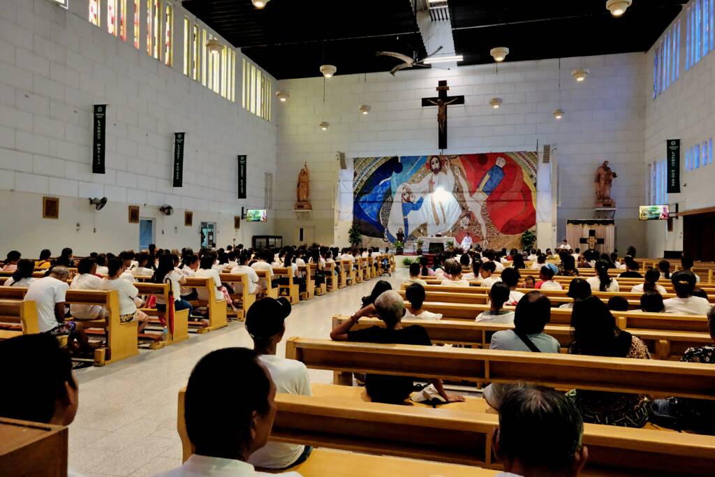 The activity started with a mass held at San Pablo Apostol Parish Church. In commemoration of the 10th year of Laudato Si and the Season of Creation, frontline communities, faith leaders, artists, and advocates are coming together in support of the Smokey Mountain, Tondo communities. Photo: Nadia Cruz