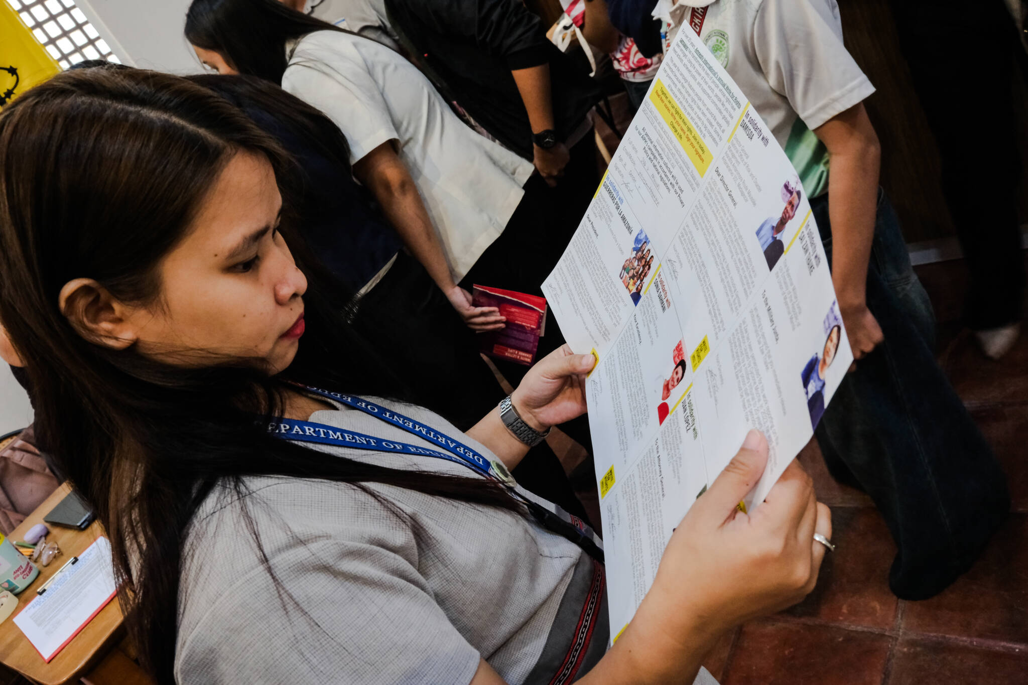 One of the highschool teachersreads a brochure about Amnesty Internationals’ campaigns on human rights all over the world. Photo: Nadia Cruz