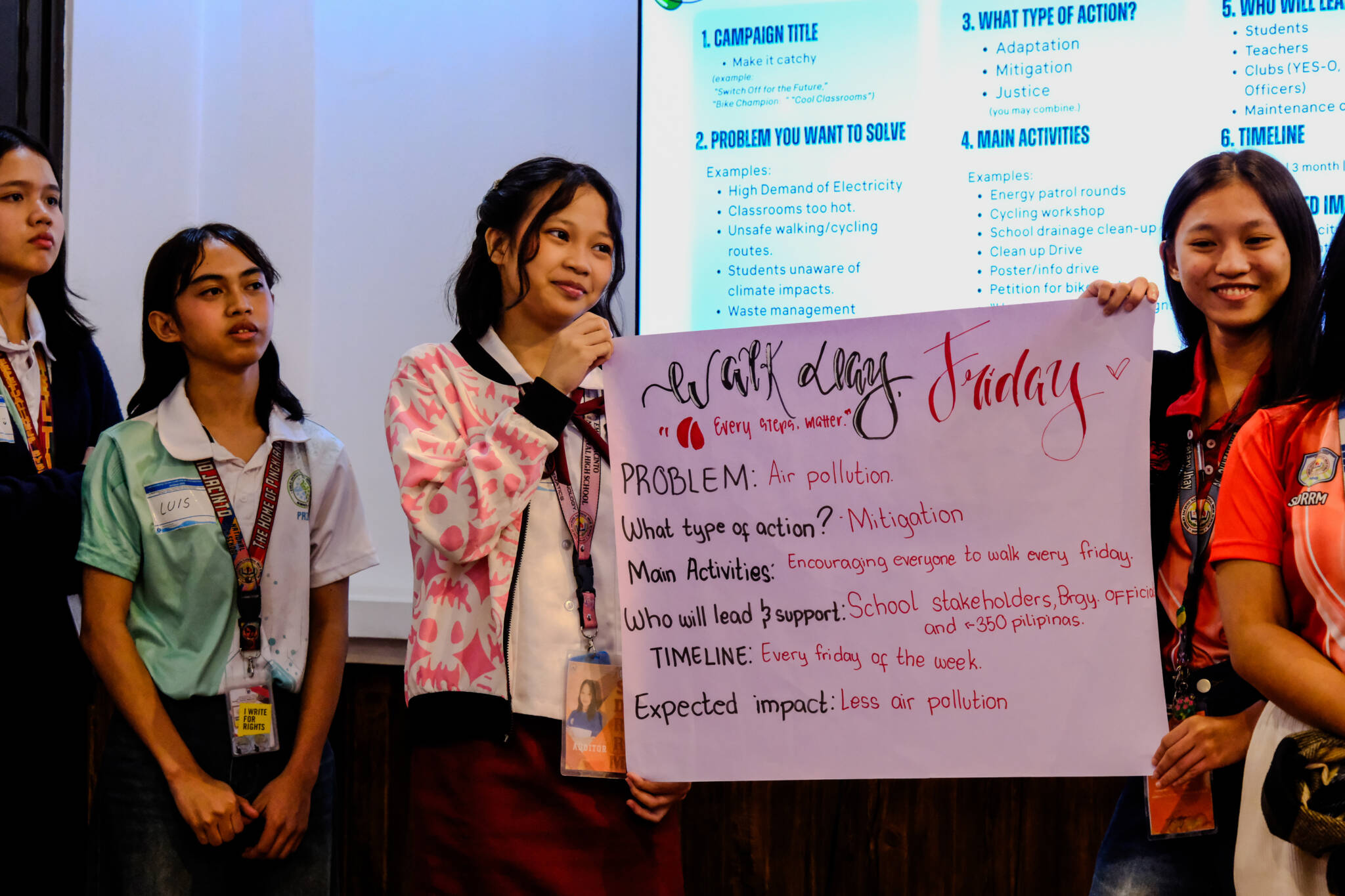 Armed with new knowledge, participants rolled up their sleeves and designed actionable, school-based climate projects—from improving waste management systems in their schools to help tackle flooding in their home communities, to promoting active mobility, including the crowd favorite, “Walk Day Friday,” a student-led initiative that encourages low-carbon commuting and sustainable transport.