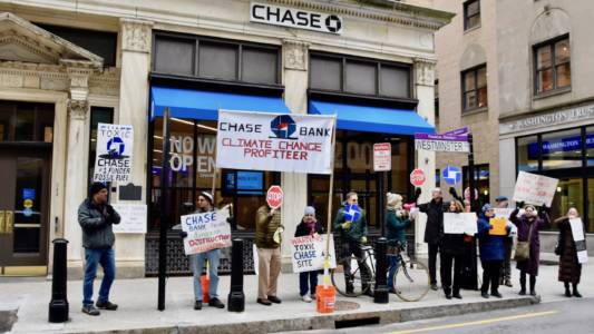 As part of a nationwide series of protests against Chase Bank’s reckless investment in fossil fuels, Climate Action RI disrupted the Chase Bank branch on Thayer Street last Friday.
