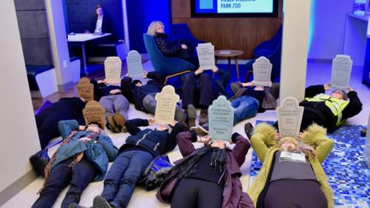 Ten activists occupied the branch for over 25 minutes, lying down …