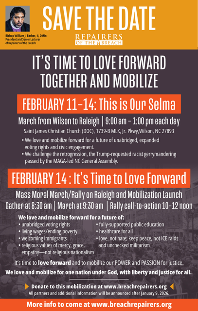 February 14, Mass Moral March on Raleigh, It’s Time to Love Forward